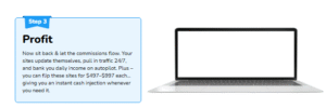 This automation allows users to create multiple income streams from one dashboard — including banner ads, product promotions, list building, and even flipping affiliate sites for $497–$997 each on platforms like Flippa or Facebook Marketplace.