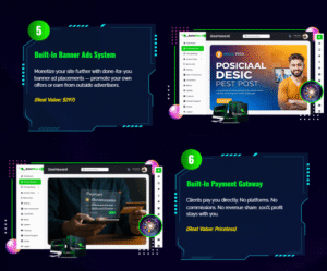 A done-for-you website with client dashboards, booking, payment gateways—personalized in minutes. No coding required.