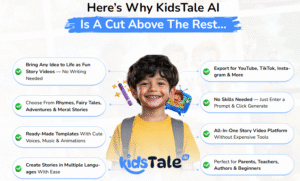 Unlike generic video makers, KidsTale AI is purpose-built for children’s content: