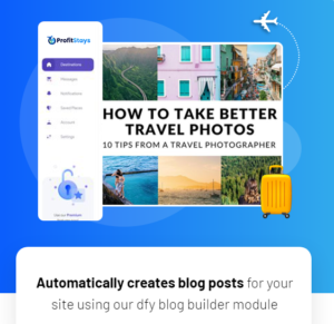 - Automatically create blog posts for your site using the DFY blog builder module.
