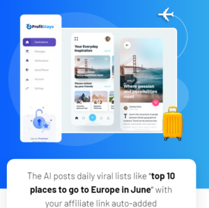 - Have AI post daily viral lists like “Top 10 Places to Visit in Europe in June” with your affiliate link auto-added.