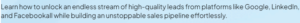• Build Targeted Lists: Create highly customized lists of potential customers from various sources like LinkedIn, Facebook, and Google.