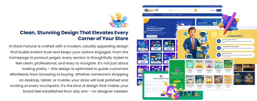 AI Store Fortune is a game-changing solution for anyone who wants to step into AI commerce without stress. With its ready-to-sell store, preloaded products, and instant setup, you can start making money online in days – all at a fraction of the usual cost.