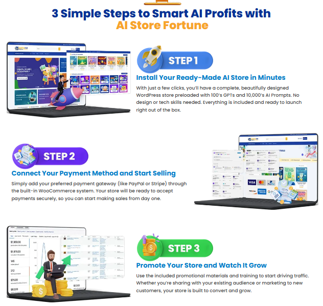 AI Store Fortune is a done-for-you AI commerce solution that lets you launch a full AI prompt business instantly. Developed by Dawn Vu, it’s designed for marketers, entrepreneurs, freelancers, and anyone who wants to tap into the booming AI market without the struggle.