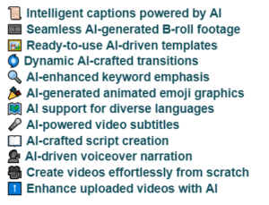 - Auto-Broll and Transcripts: Automatically enhance your videos with overlays and subtitles.