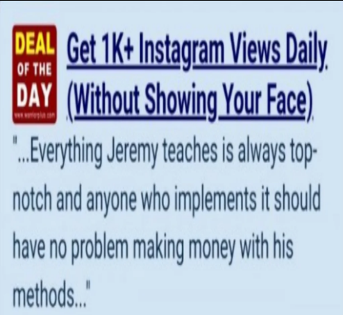 ✅ Final Verdict: Jeremy Kennedy’s “1K Views Per Day” is one of the fastest, cheapest, and most reliable ways to grow your Instagram views today. Highly recommended for anyone who wants quick results.