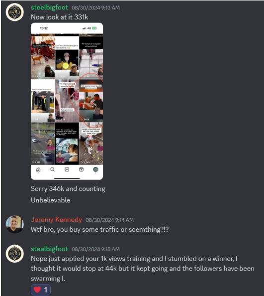 “I was stuck at less than 200 views per Reel. After using Jeremy’s method, my first repost hit 1,500 views overnight! Total game-changer for my store.”