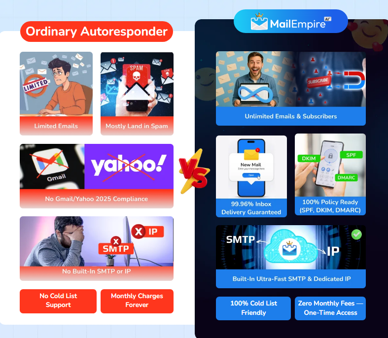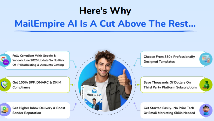 ✅ AI-Powered Email Writing – Let smart algorithms craft high-converting emails in seconds. ✅ Done-For-You Templates (250+) – From welcome series to affiliate promos, it’s all ready. ✅ SmartSend™ Timing – Maximize opens with AI-optimized send times. ✅ InboxGuard™ Protection – Scan and fix spam triggers for higher inbox placement. ✅ Cold List Friendly – Use verified cold leads with no warm-up headaches. ✅ Gmail & Yahoo Compliant – Built for the 2025 email delivery rules. ✅ Drag-and-Drop Builder – No tech skills required. ✅ Commercial License Included – Sell email campaigns to clients and keep 100% of profits. ✅ Cloud-Based & Beginner Friendly – Access from anywhere, no installation needed.